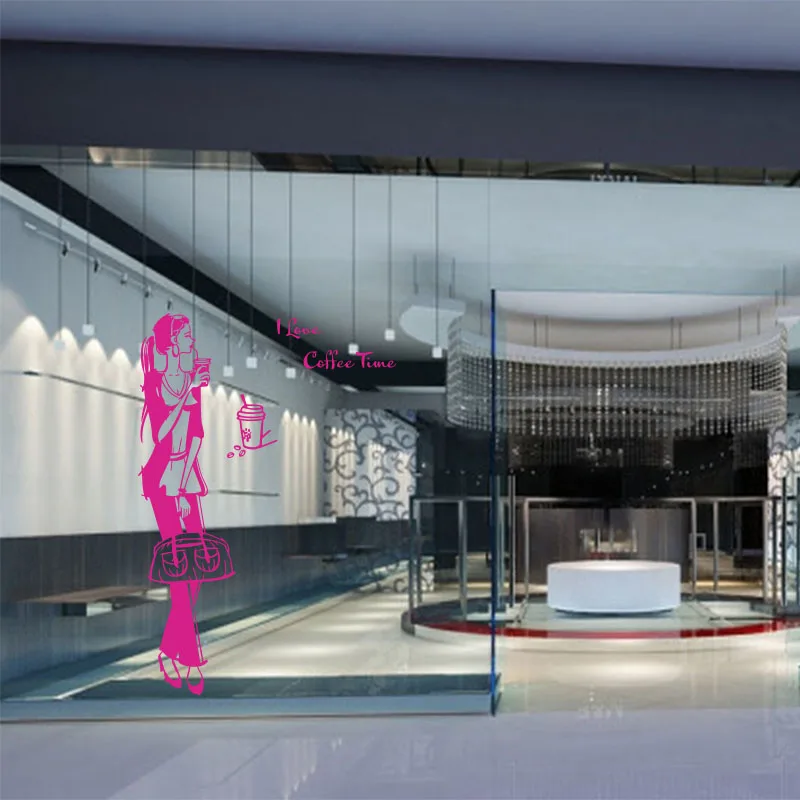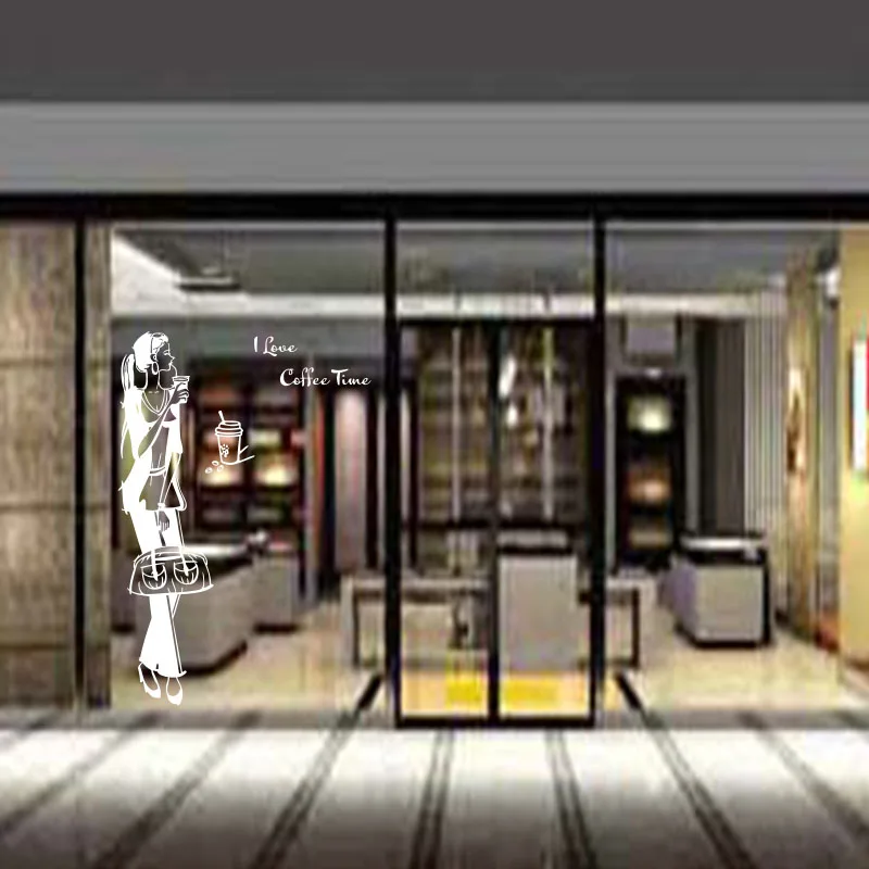 Vinyl Sculpture Fashion Wall Sticker Milk Tea Coffee Shop Adhesive Ice Cream Bread Girl Wall Art St