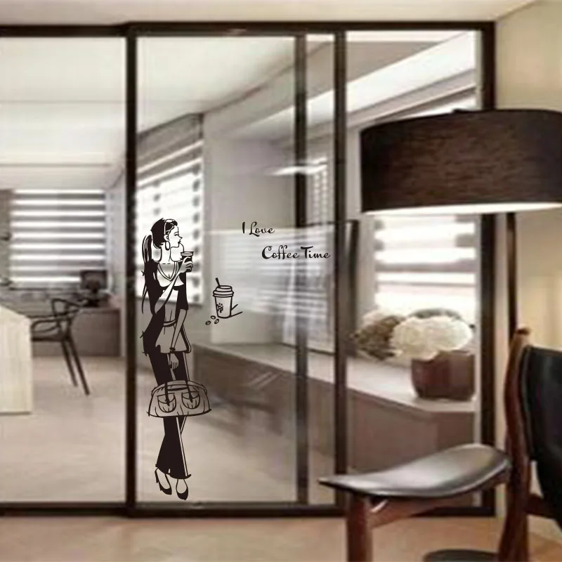 REVIEW TOP SELLER Vinyl Sculpture Fashion Wall Sticker Milk Tea Coffee Shop Adhesive Ice Cream Bread Girl Wall Art St