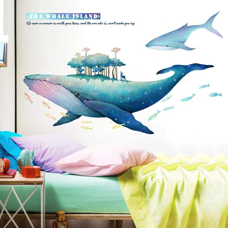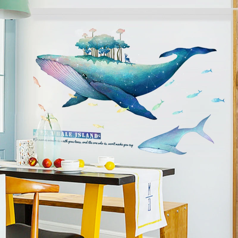 Creative Blue Whale Wall Sticker for Kids Room DIY Large Removable Vinyl Stickers Baby Room Decorat