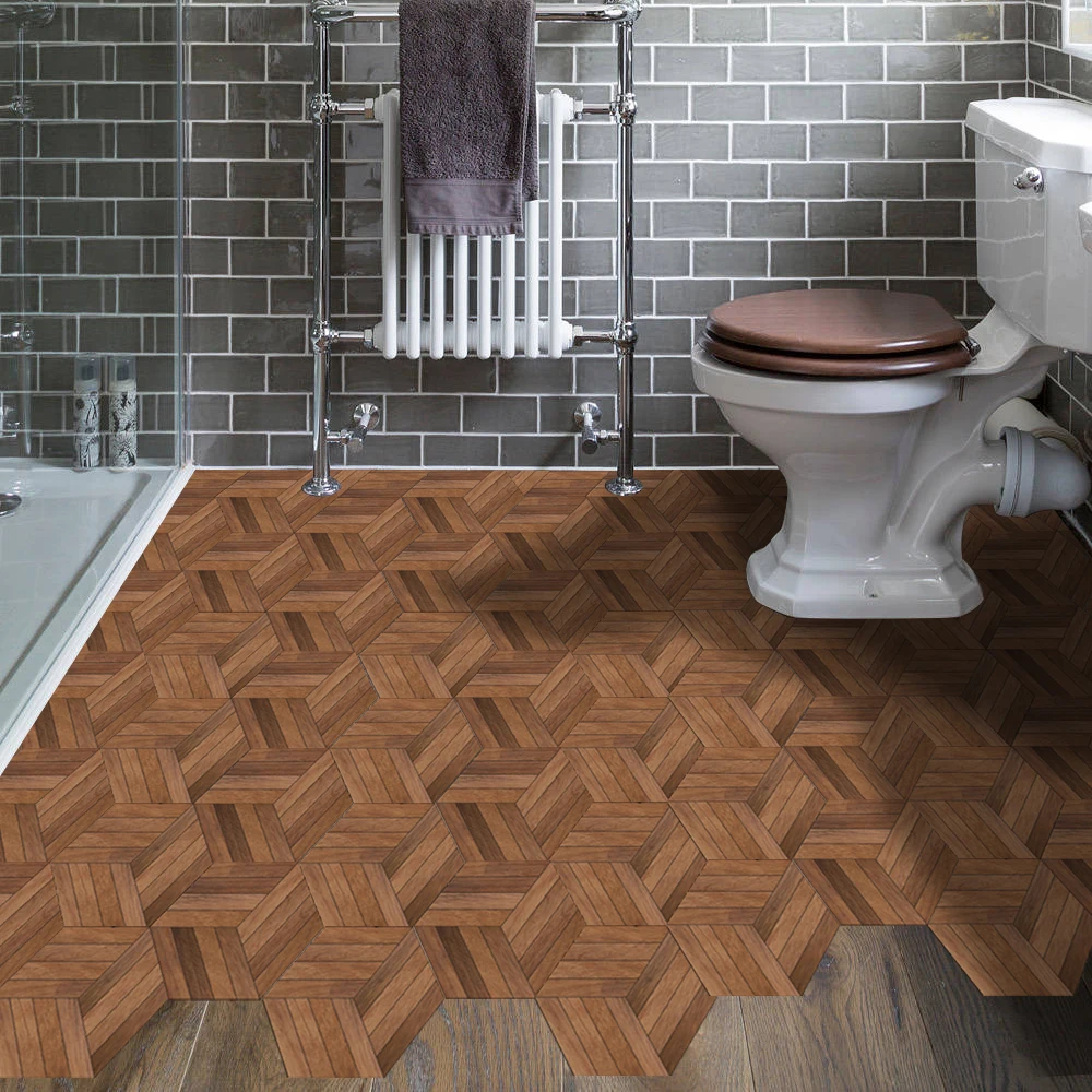 BEST QUALITY 10pcs/set Wood Pattern Hexagon Floor Wall Stickers Waterproof Anti-Slip Tile Art Decal Bathroom Bed