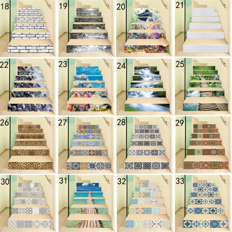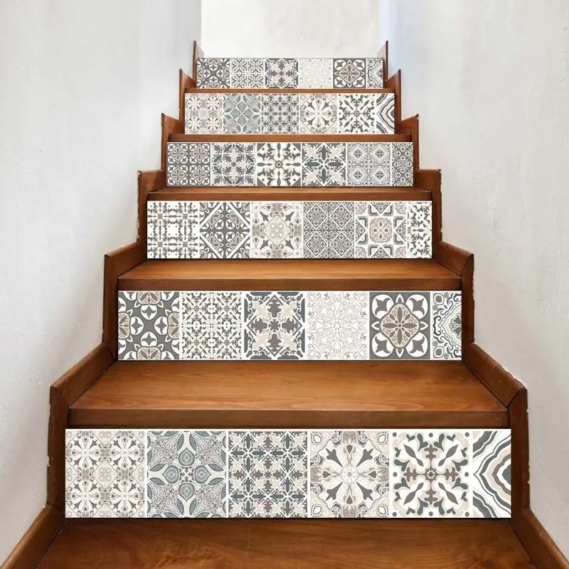 ORIGINAL 6pcs/set 3D Mandala Flower Staircase Stair Riser Floor Sticker Self Adhesive DIY Stairway Waterproo