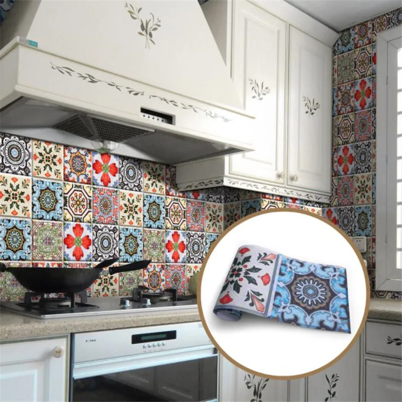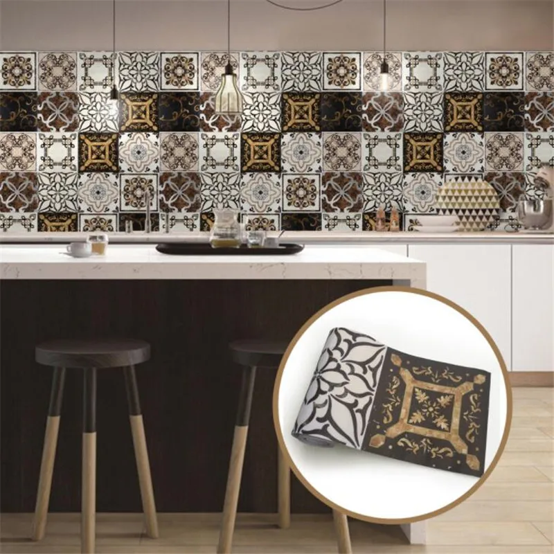 European ceramic tile stickers self adhesive Wallpaper Decal Gas Stove Floor Wall Sticker for Kitch